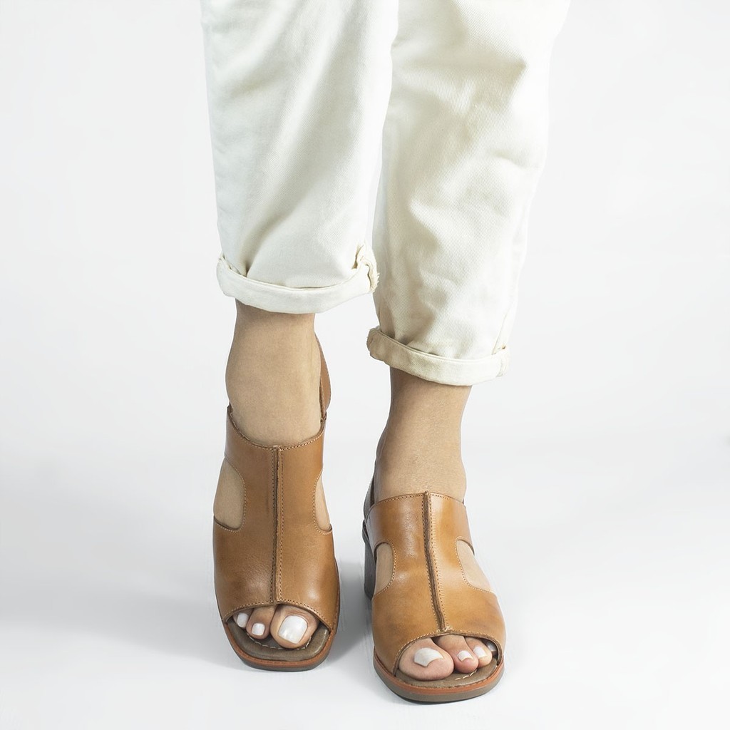 Sandália Salto Bloco Couro Maggie Castanho