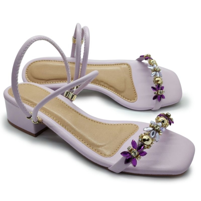 Sandália salto bloco pedraria flor 2em1 sandália é tamanco (salto 4cm)