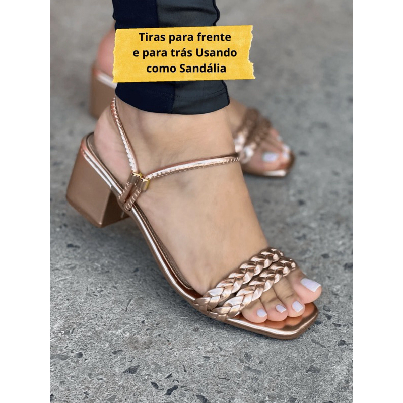 Sandália Salto Feminina Stillus Salto Tiras Trançadas Tamanco salto médio Palmilha Confort 2025