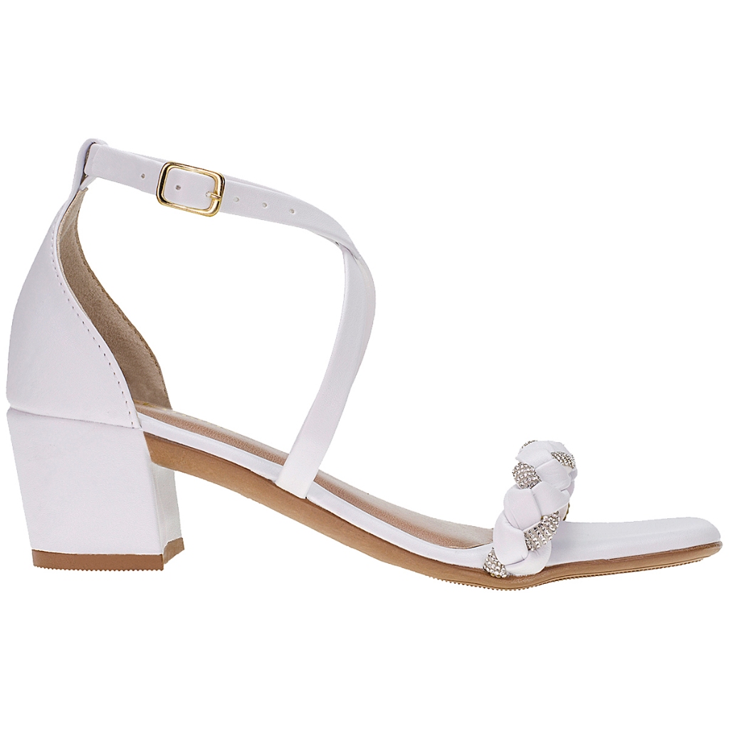 Sandália Salto Saltinho Feminino Shekinah Confortável Tranças Strass Tiras Cruzadas