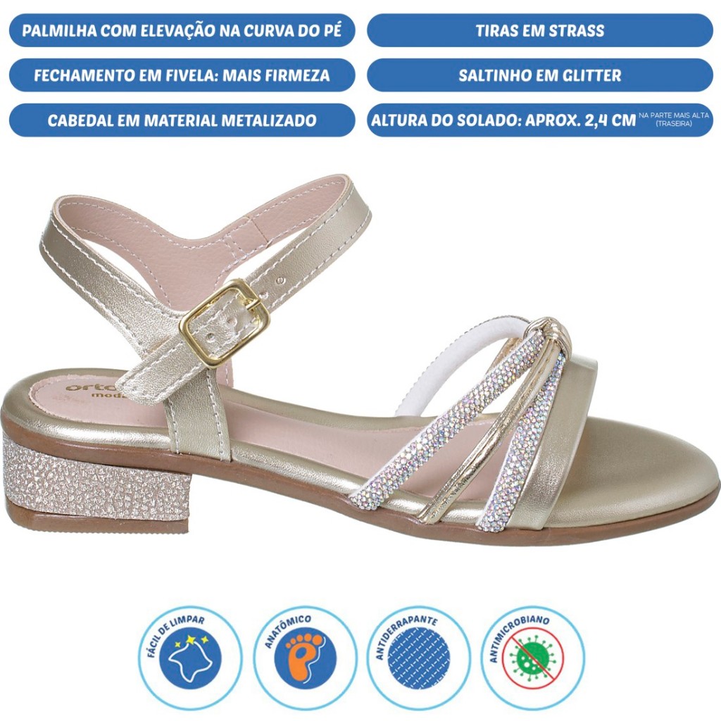 Sandália Salto Saltinho Infantil Ortopasso Menina Feminino Strass Bonita Delicada Festa Moda Fashion