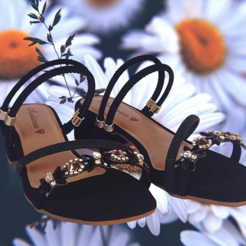 Sandália Rasteira Feminina Um Luxo Pedraria COM STRASS Antiderrapante Cabedal Material sintético. * Palmilha no material sintético. Super confortável. * Solado PVC macio ( não escorrega). * Enfeites em pedras. Pedras de qualidade. * Fivela dourada. Com regulagem. * Forma normal. * Vai na caixinha . Não se esqueça conferir ✅TABELA DE TAMANHO EM CM: 34 -------------- 23,5 cm 35 -------------- 24,0 cm 36 -------------- 24,5 cm 37 -------------- 25,0 cm 38 -------------- 26 cm 39 -------------- 26,5 cm