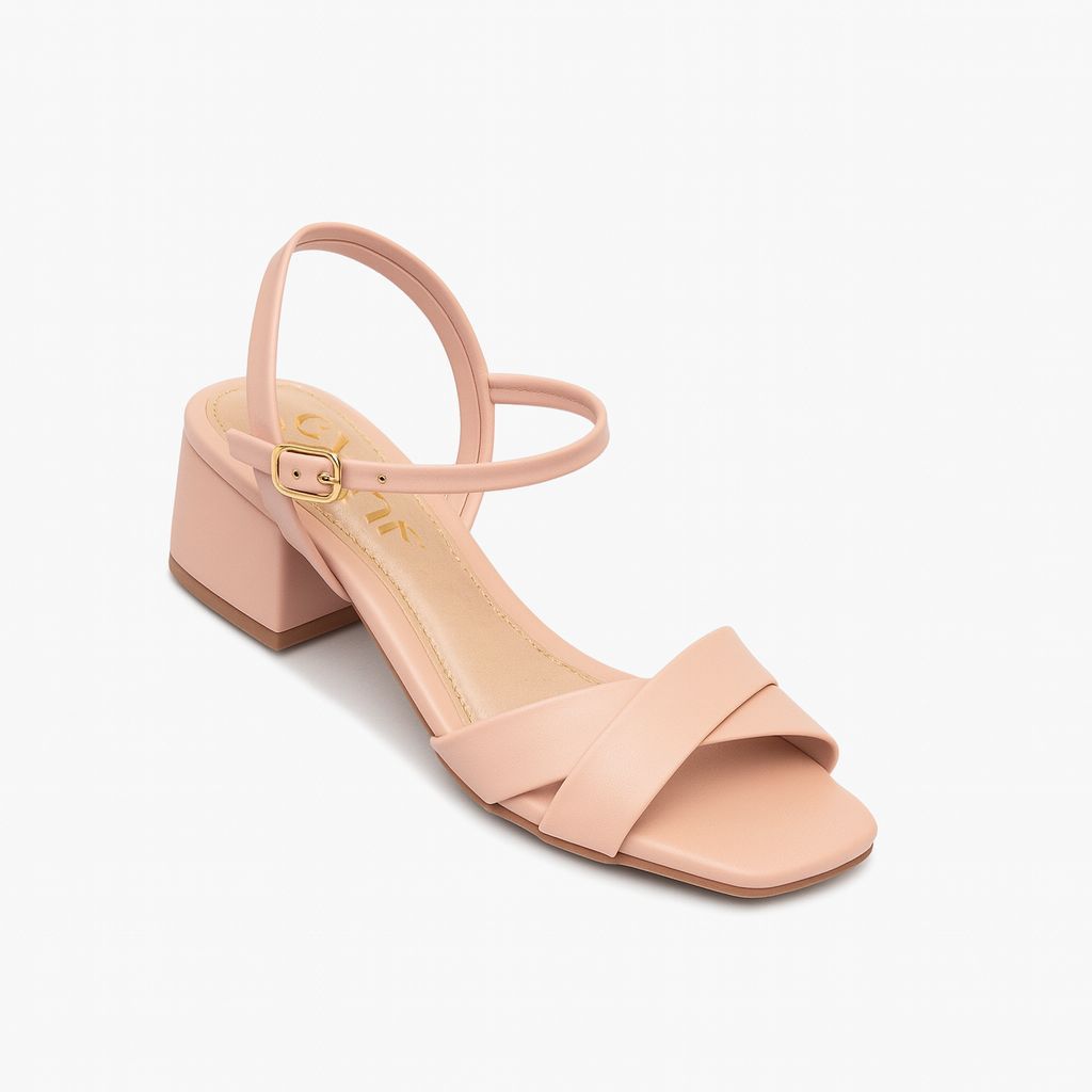 Sandália Sanf Feminino Salto 5Cm Baixo Médio Bloco Grosso Quadrado Elegante Fivela Tira Cruzada X