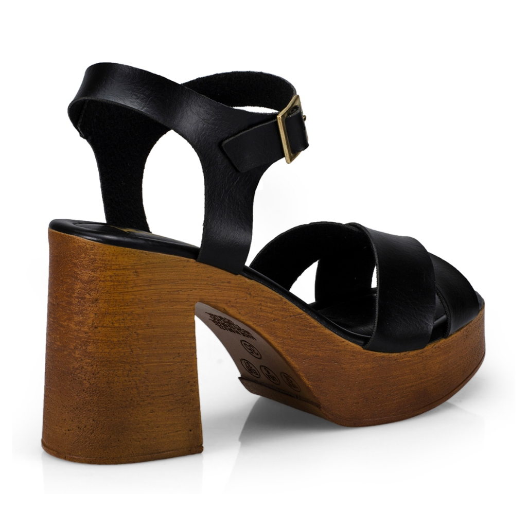 Sandália Tamanco Anabela Feminino Fivela Salto Alto Grosso Bloco Madeira 7013