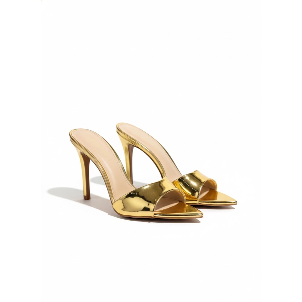 Sandália tamanco mule bico folha fino salto fino alto elegante