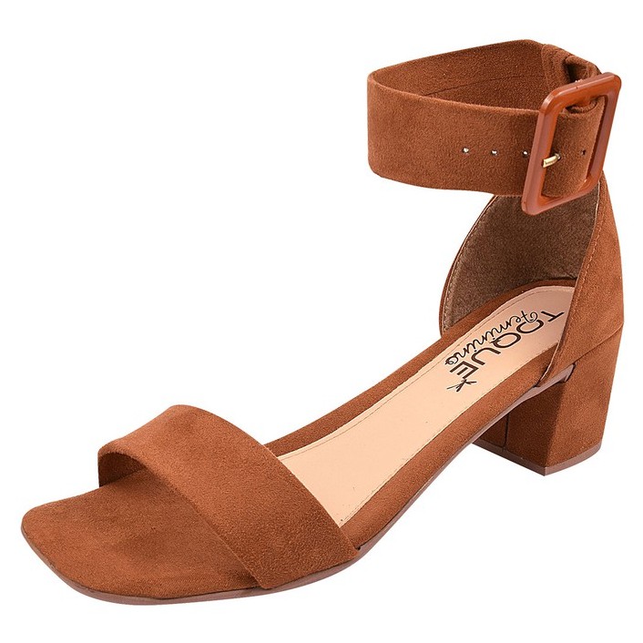 Sandália Toque Feminino Salto Baixo Fivela Alta Bico Quadrado