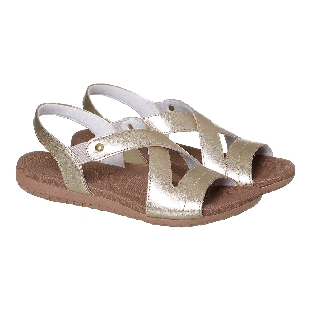 Sandalia Usaflex Rasteira Couro Elastico Ortopedica Feminina