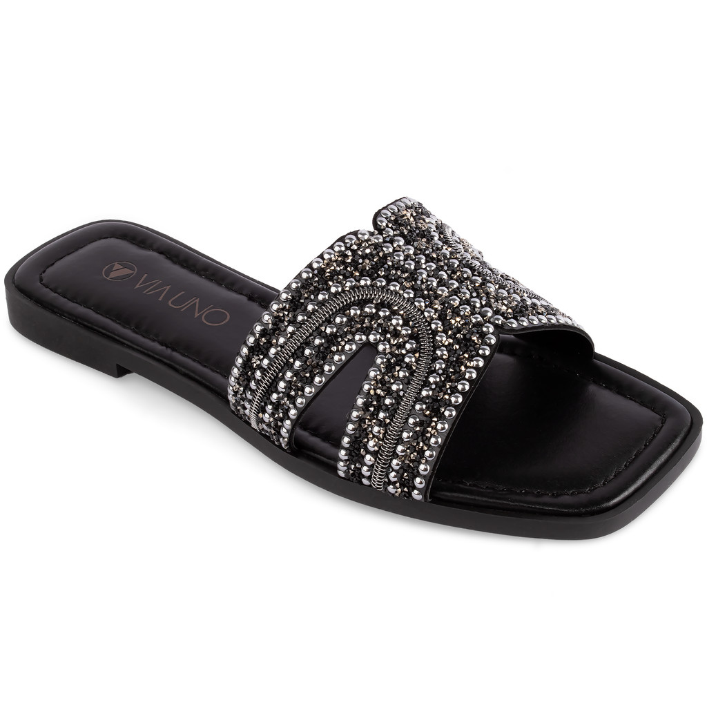 Sandália Via Uno Rasteira Elegante Pedraria Strass 948028