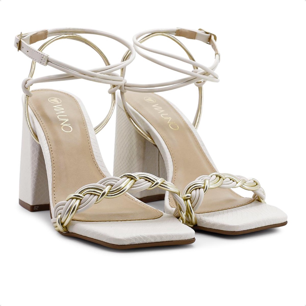 Sandália Via Uno Salto Alto Bloco Tiras Feminina Original Com Nota Fiscal e Garantia