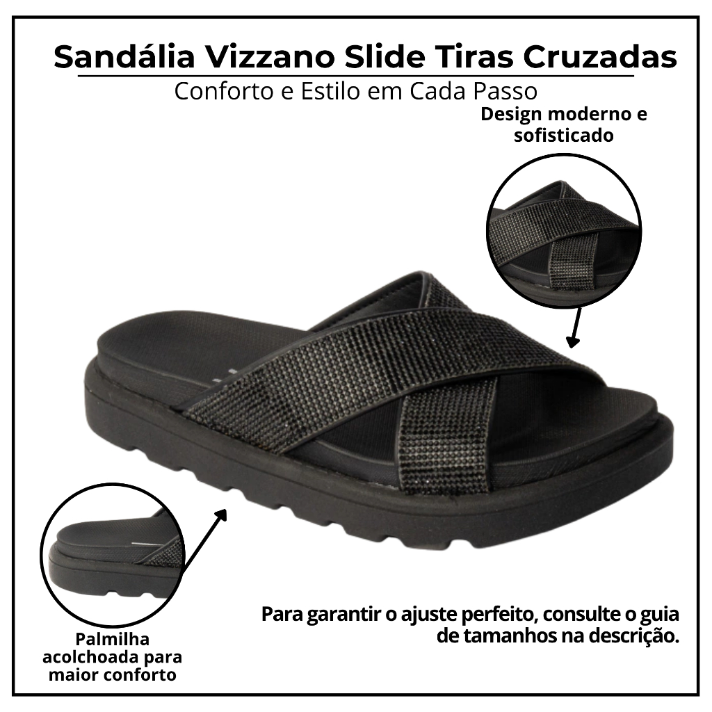 Sandália Vizzano Papete Rasteira Strass Tira Grossa 6459-122