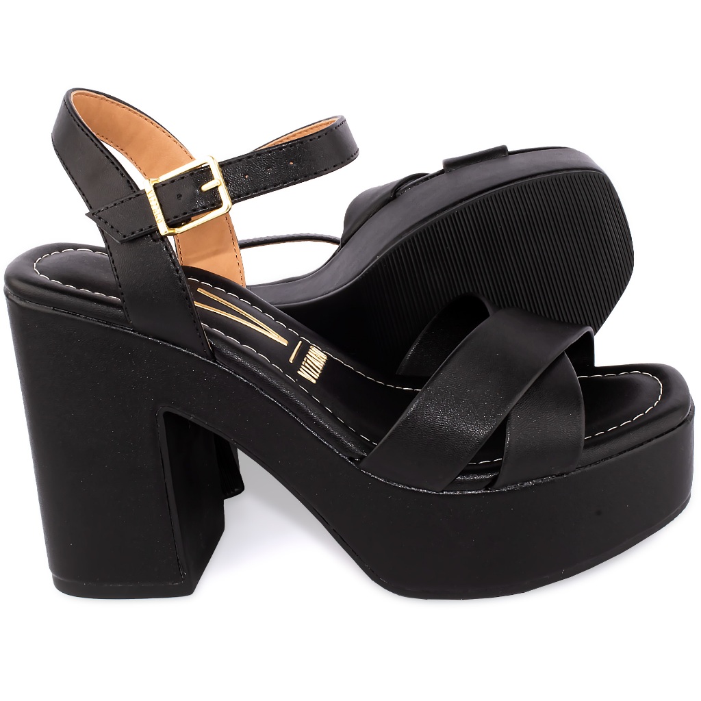 Sandália Vizzano Salto Alto Grosso Elegante Moderno 6541 Preto
