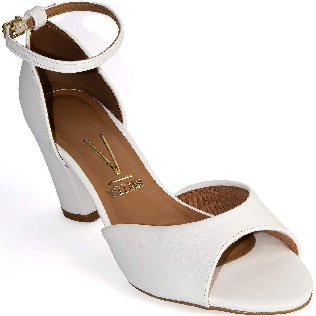 Sandália Vizzano Salto Bloco Médio Grosso Confortável 6262-406 Branco