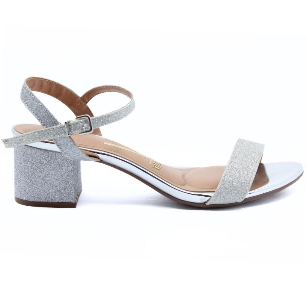 Sandália Vizzano Salto Bloco Metalizada Glitter Feminina Festa Moda Original