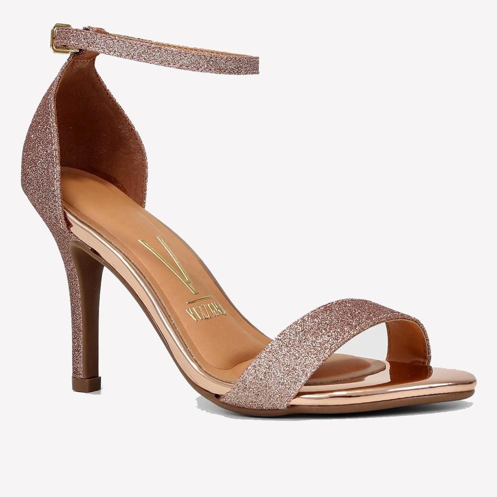 Sandália Vizzano Salto Fino Alto Brilho Metalizado Feminina - Bronze