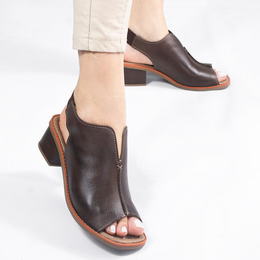 Sandália Zatta Salto Bloco Couro Recorte