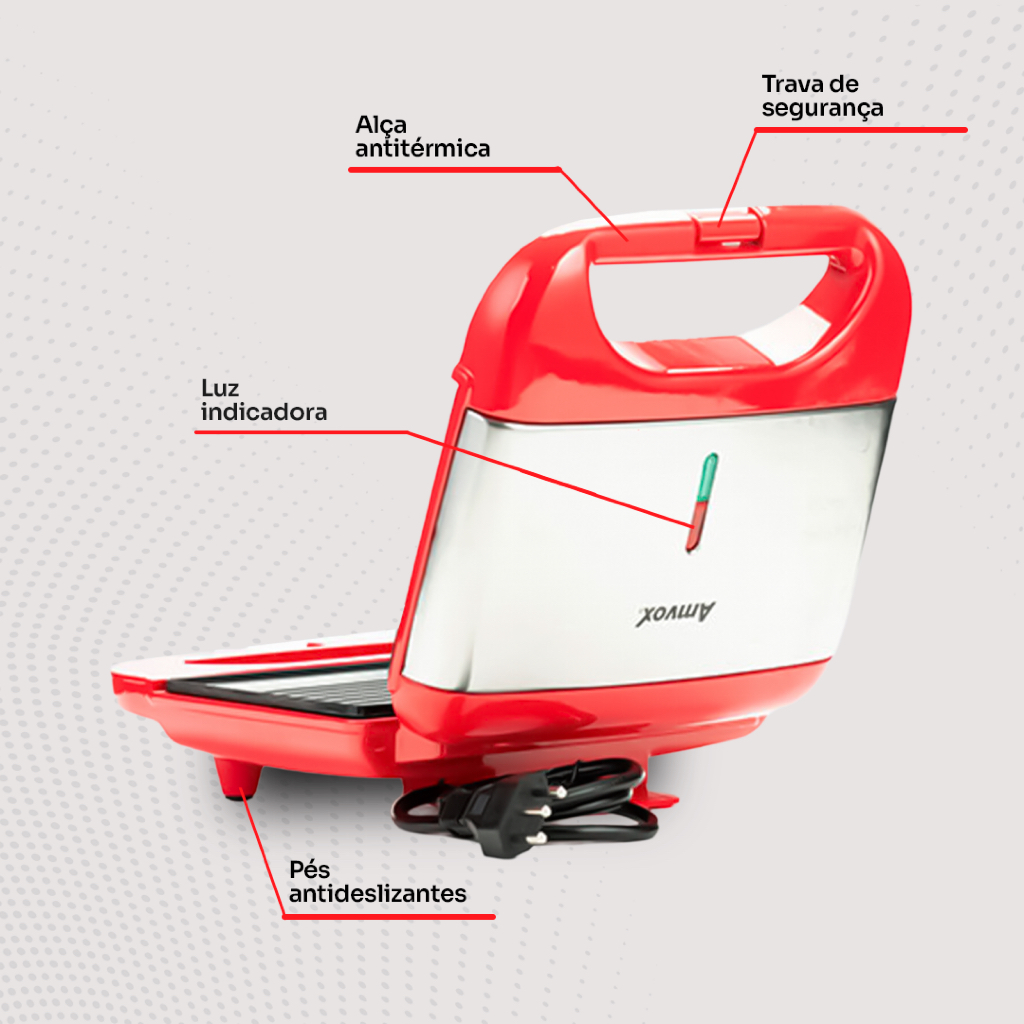 Sanduicheira e Grill 2 em 1 Amvox AMS 500 RED Inox 750w