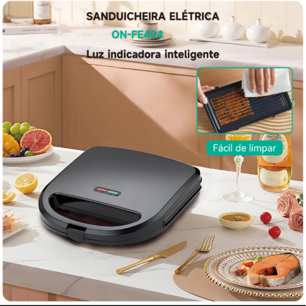 Sanduicheira Elétrica 800W para Lanches Aquecimento Duplo Fácil Limpeza 110V 220V ON-FE404
