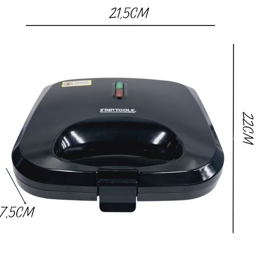 Startools Ferramentas Sanduicheira Grill Elétrica – Praticidade e Versatilidade para Suas Refeições Descubra a facilidade de preparar lanches e grelhados com a Sanduicheira Elétrica Startools Ferramentas. Projetada para quem busca eficiência e rapidez na cozinha, ela é ideal para o preparo de sanduíches, carnes, legumes e muito mais. Principais Características: ● Potência de 750W: Proporciona aquecimento rápido e uniforme, garantindo alimentos crocantes por fora e macios por dentro. ● Placas Antiaderentes: Facilitam o preparo e a limpeza, evitando que os alimentos grudem nas superfícies. ● Design Compacto e Moderno: Seu formato leve e compacto permite fácil armazenamento e transporte, adaptando-se a qualquer espaço na cozinha. ● Luz Indicadora de Funcionamento: Sinaliza quando o aparelho está ligado e pronto para uso, proporcionando mais segurança no manuseio. ● Trava de Segurança na Alça: Garante que a sanduicheira permaneça fechada durante o uso, evitando acidentes e assegurando um resultado perfeito. ● Pés Antiderrapantes: Oferecem maior estabilidade durante o uso, evitando deslizamentos indesejados. Benefícios para o Usuário: ● Alimentação Saudável: Permite grelhar carnes e preparar sanduíches sem a necessidade de óleo ou manteiga, contribuindo para uma dieta mais equilibrada. ● Facilidade de Limpeza: As placas antiaderentes tornam a limpeza simples e rápida, economizando tempo no dia a dia. ● Segurança e Praticidade: Com luz indicadora e sistema de fechamento seguro, oferece uma experiência de uso tranquila e eficiente. Especificações Técnicas: ● Dimensões: 21,5x22x7,5Cm ● Voltagem: Disponível em 110V E 220V ● Material: Plástico e Inox ● Cor: Preto ● Grelha Duplas ● 2 Em 1 Prepara Sanduíches E Grelhados Conteúdo da Embalagem: ● 1 Sanduicheira Elétrica Startools Ferramentas ● 1 Manual do Usuário A Sanduicheira Elétrica Startools Ferramentas é a escolha ideal para quem busca praticidade, segurança e um design moderno na cozinha. Transforme suas refeições com mais facilidade e sabor!
