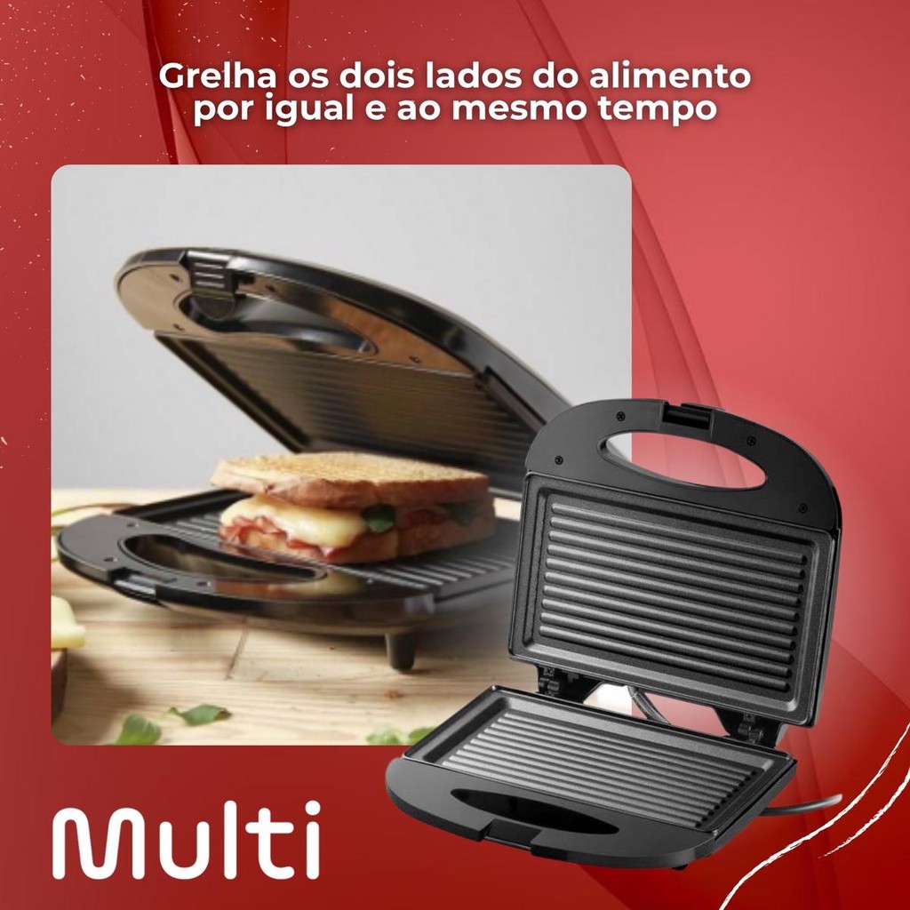 Sanduicheira Misteira Antiaderente Grelha Elétrica Multilaser Grill Gourmet 750w Cor Preto