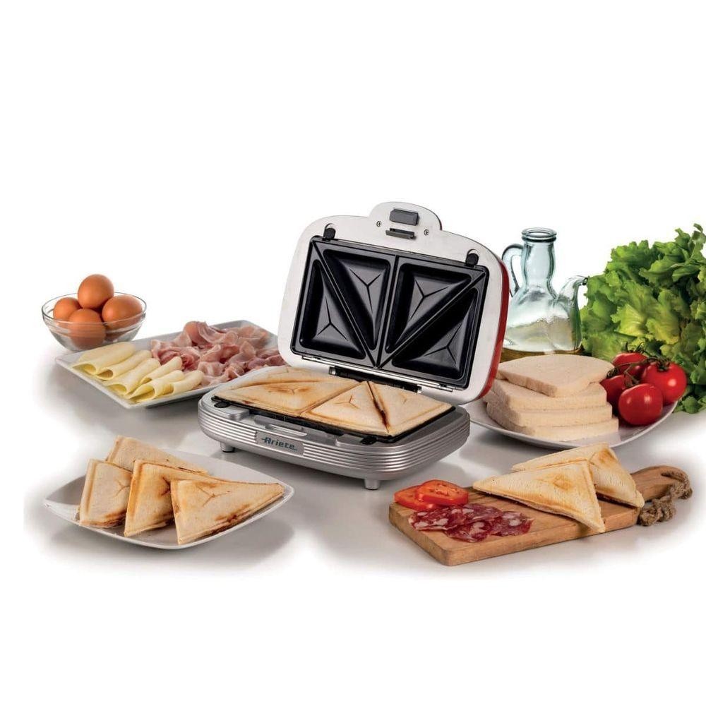 Sanduicheira Multifuncional Retrô Party Time 220v Ariete Vermelha A Sanduicheira Multifuncional Retrô é o produto que não pode faltar na sua cozinha, com seu design lindo e atemporal, permite que você faça diversas receitas em casa com o melhor que a qualidade Ariete pode te oferecer.Especificações do Produto:- Multifuncional: prepare sanduiches, muffins, cookies e donuts em um mesmo produto- 3 placas antiaderentes e variadas de fácil limpeza- Ideal para festa, lanches ou um dia especial- Estilo retrô divertido e ao mesmo tempo eleganteFicha Técnica:- Código: 4083190010- Marca: Ariete- Modelo: Retrô/Party Time- Conteúdo da Embalagem: 1 Sanduicheira Multifuncional e 3 Placas Antiaderentes- Material: Metal- Voltagem: 220V- Potência: 700W- Cor: Vermelho e Branco- Peso: 2,75kg- Dimensões: 11cm x 27cm x 22cm (AxLxP)- Garantia: 1 Ano- Certificação Inmetro:- BRSC230100011201 (09/03/2023)- BRSC230100010701 (10/02/2023)- BRSC230100010601 (28/02/2023)- BRSC230500048701 (05/06/2023) Altura - 11cm Largura - 27cm Profundidade - 22cm Peso - 2,75kg Sobre a Marca - A marca italiana Ariete, fundada em 1964, tem sede na Toscana e é conhecida pela criatividade e inovação. O seu sucesso reside em produtos diferenciados e concebidos de forma criativa, apoiados por investimentos significativos em pesquisa e desenvolvimento. A Ariete oferece uma linha de produtos que inclui liquidificadores, sanduicheiras, raladores elétricos, aparelhos de limpeza e muito mais. A marca agora se expande para o Brasil com produtos renovados e pensados para o mercado brasileiro, mantendo a qualidade europeia.