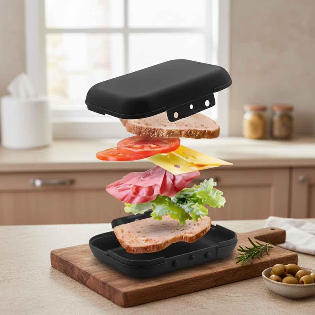 Sanduicheira Porta Lanche Sanduiche Fitness Bicolor Preta Marmitou OU