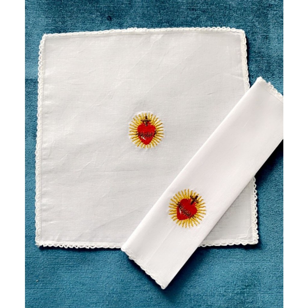 NÃO ACOMPANHA CORPORAL. Sanguíneo confeccionado em tecido (algodão) Acabamento em Picueta. Bordado computadorizado e de ótima qualidade. Sagrado Coração Medida: Sanguíneo de tamanho....22 x 16 centímetros