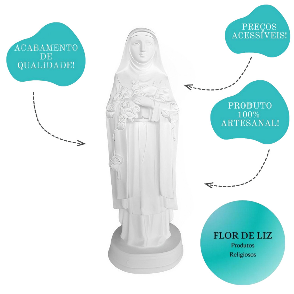 Santa Terezinha 20cm em Gesso Cru Branco Imagem Sacra para Artesanato e Decoração