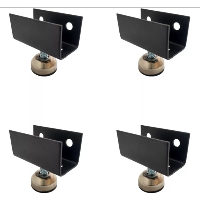 Sapata "U" para MDF 15mm com rosca Preto + Pé Nivelador + Parafusos - Kit 4 un