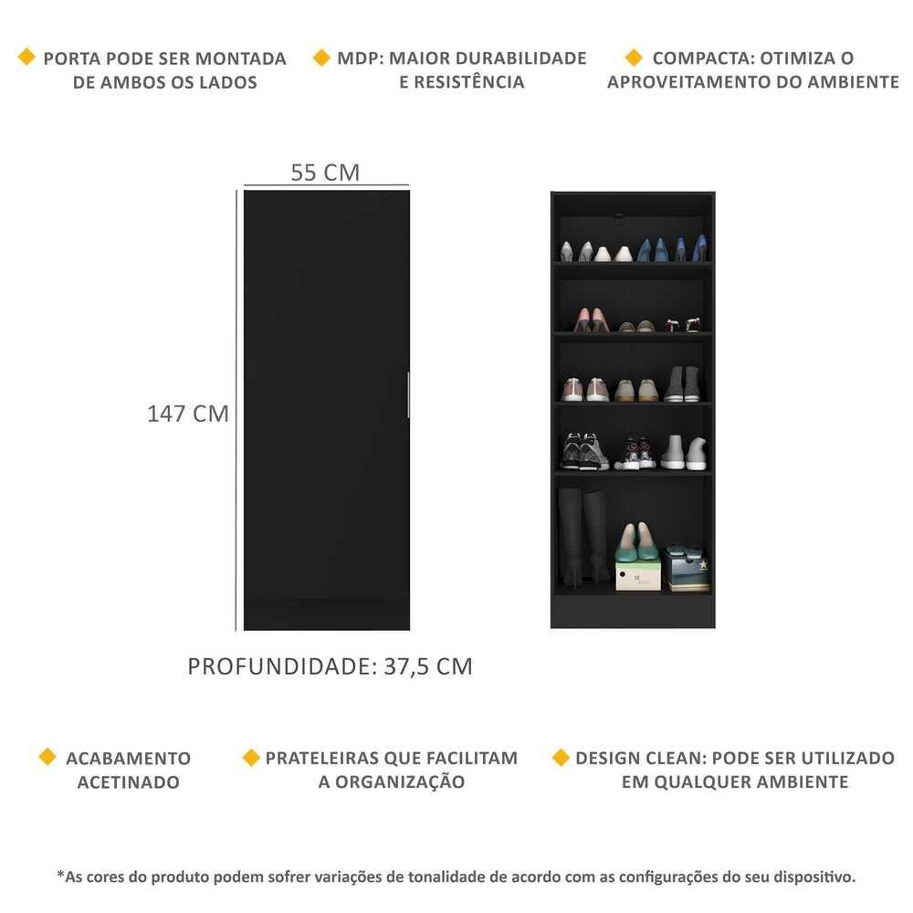 Sapateira 1 Porta Multimóveis Jade FG6005 Preta
