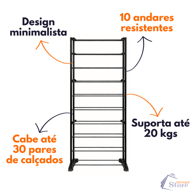 | Sapateira 10 Andares Preta Até 30 Pares Organizador Vertical Desmon... este produto | R$ 39,89 | 40% | 4.5/5 | 83 |
