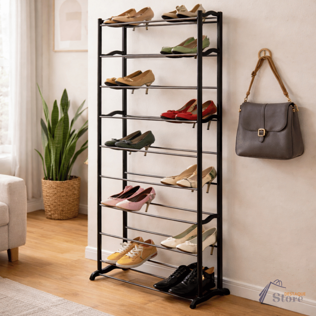 🖤 ORGANIZE SUA CASA COM PRATICIDADE E ECONOMIA DE ESPAÇO! A Sapateira 10 Andares Preta é ideal para quem precisa manter os sapatos organizados sem ocupar muito espaço. Perfeita para quartos, closets, lavanderias e até lojas. ✅ CAPACIDADE IDEAL Armazena de 20 a 30 pares de sapatos (dependendo do tamanho) ✅ SUPER COMPACTA Formato vertical que economiza espaço ✅ FÁCIL DE MONTAR Montagem rápida, sem necessidade de ferramentas ✅ LEVE E RESISTENTE Estrutura em tubos metálicos + conectores reforçados ✅ MULTIUSO Também pode ser usada para bolsas, caixas e acessórios 📏 ESPECIFICAÇÕES Cor: Preto Quantidade de andares: 10 Altura aproximada: 1,35m a 1,40m Material: Metal + plástico Capacidade: até 30 pares 📦 CONTEÚDO DA EMBALAGEM 1 Sapateira 10 Andares (desmontada) Manual simples de montagem ⚠️ ATENÇÃO Produto leve (ideal para uso doméstico) Não recomendado para excesso de peso em um único nível 🚚 ENVIO RÁPIDO Postagem em até 24h após confirmação 💥 GARANTA JÁ A SUA E DEIXE SUA CASA MUITO MAIS ORGANIZADA!