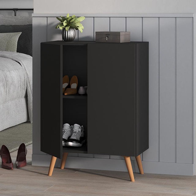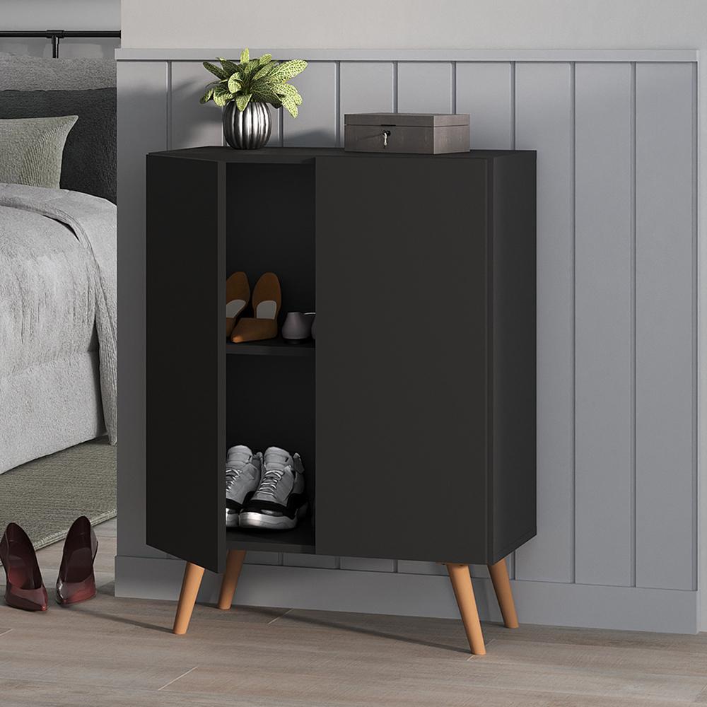 Sapateira 2 Portas Retrô Nina Multimóveis Preta/Natural