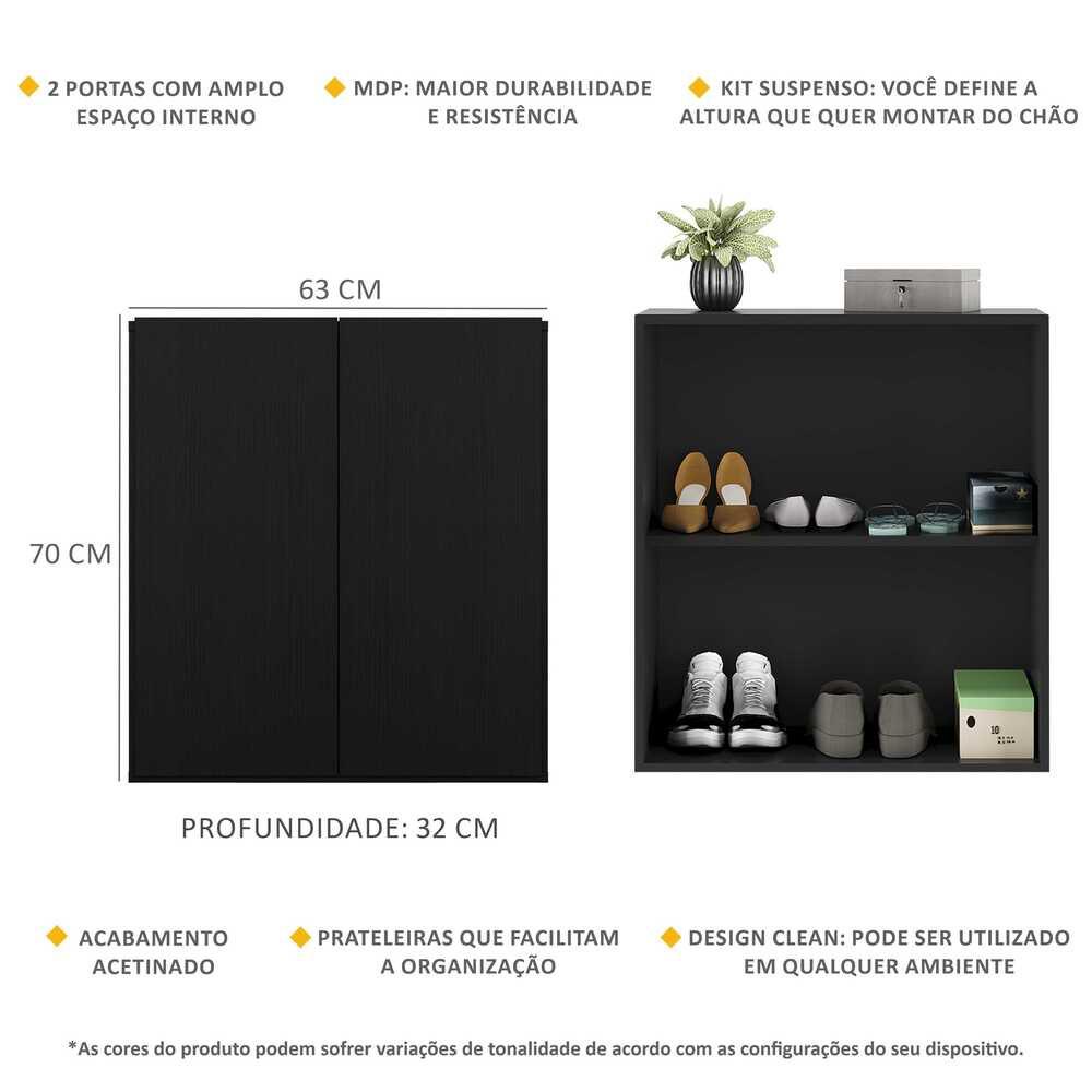 Sapateira 2 Portas Suspensa Nina Multimóveis Preta