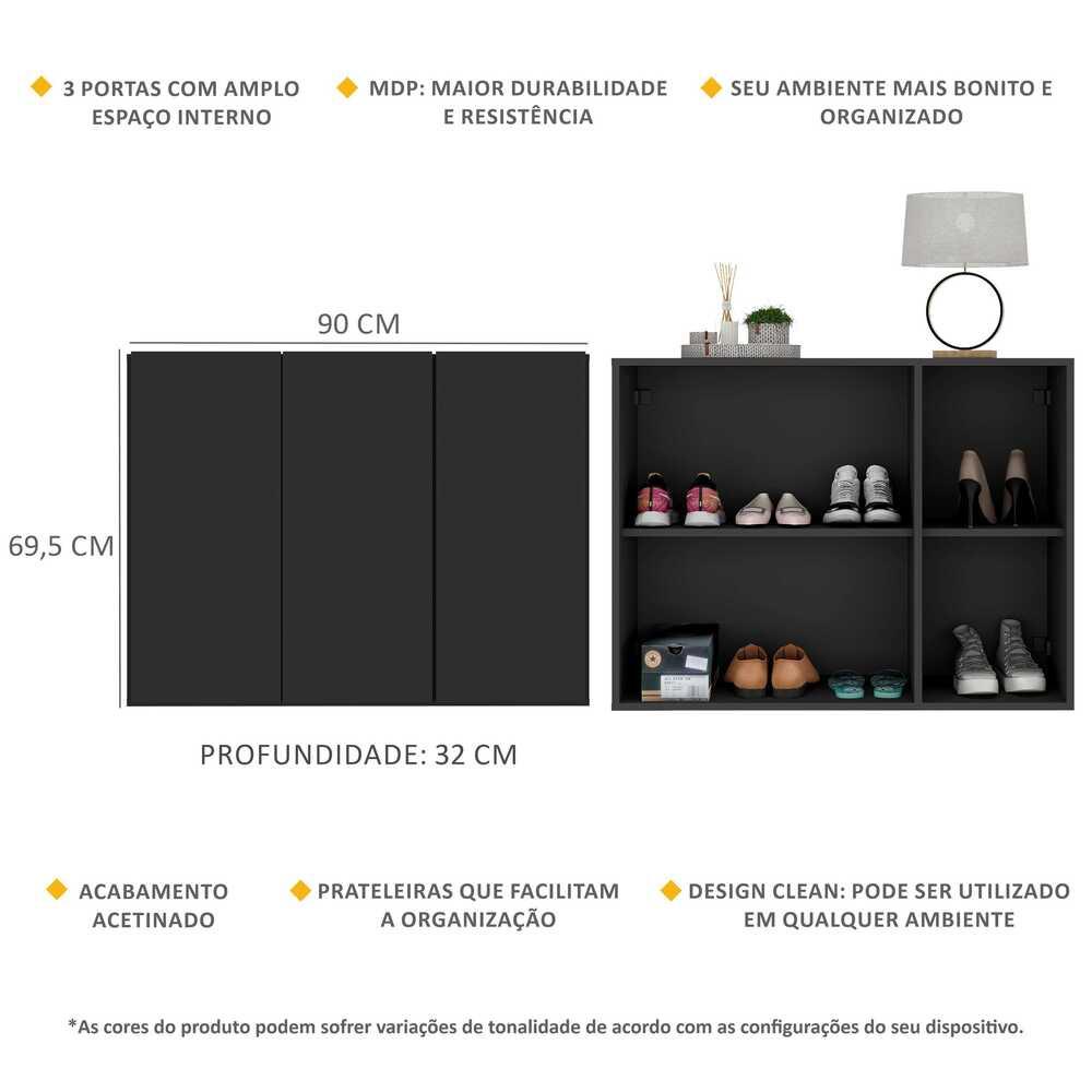 Sapateira 3 Portas Nina Multimóveis Preta