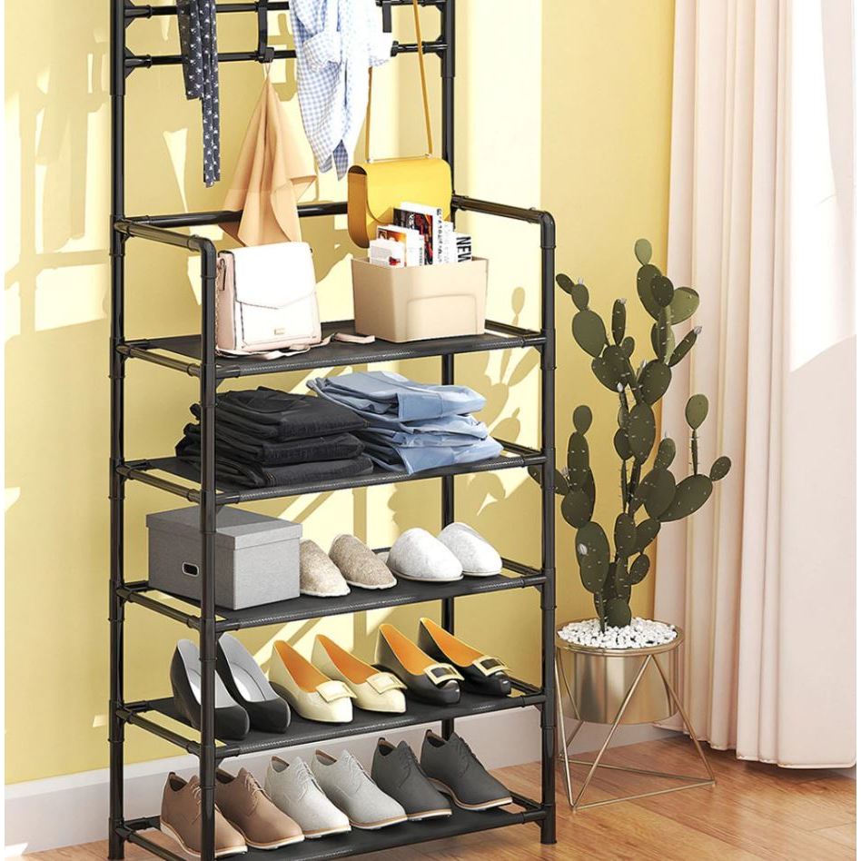 ENVIO EM 24 HORAS UTEIS 【Design 2 em 1】 Suporte para roupas com armário de sapatos, ajuda você a limpar seus sapatos na entrada e oferece um lugar para pendurar suas coisas, você pode pendurar jaquetas, casacos ou bolsas. 【Design econômico】 Com 60 x 29 x 171 cm, este cabide de entrada oferece uma solução eficiente de organização de entrada. É uma excelente maneira de resolver perfeitamente o constrangimento de colocar sapatos e bolsas na entrada da sua casa. 【Fácil de montar】 Instruções claras estão incluídas no pacote, fácil de instalar sem ferramentas adicionais, você pode montar esta árvore sem esforço em 20 minutos. Versátil para qualquer cômodo: este cabide independente com um design moderno pode ser colocado em qualquer lugar, perfeito para sua entrada, lavanderia, sala de estar e quarto, oferecendo flexibilidade no posicionamento para conveniência ideal. - Material: Ferro - 5 Prateleiras + 8 ganchos duplos - Fácil de montar, não precisa de ferramentas. - Design compacto e moderno. - Ideal para sapatos, bolsas, casacos, livros. - Dimensões: 171cm de altura x 60cm de largura x 29cm OBS.Método de medição é diferente, As medições manuais podem apresentar erros, o que é normal. TESTE DE QUALIDADE: Todos nossos produtos são checados e inspecionados antes do envio para o cliente, proporcionando mais segurança e qualidade para sua compra!