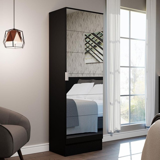 Sapateira Armário Multiúso Isis 1 Porta Com Espelhos Preto
