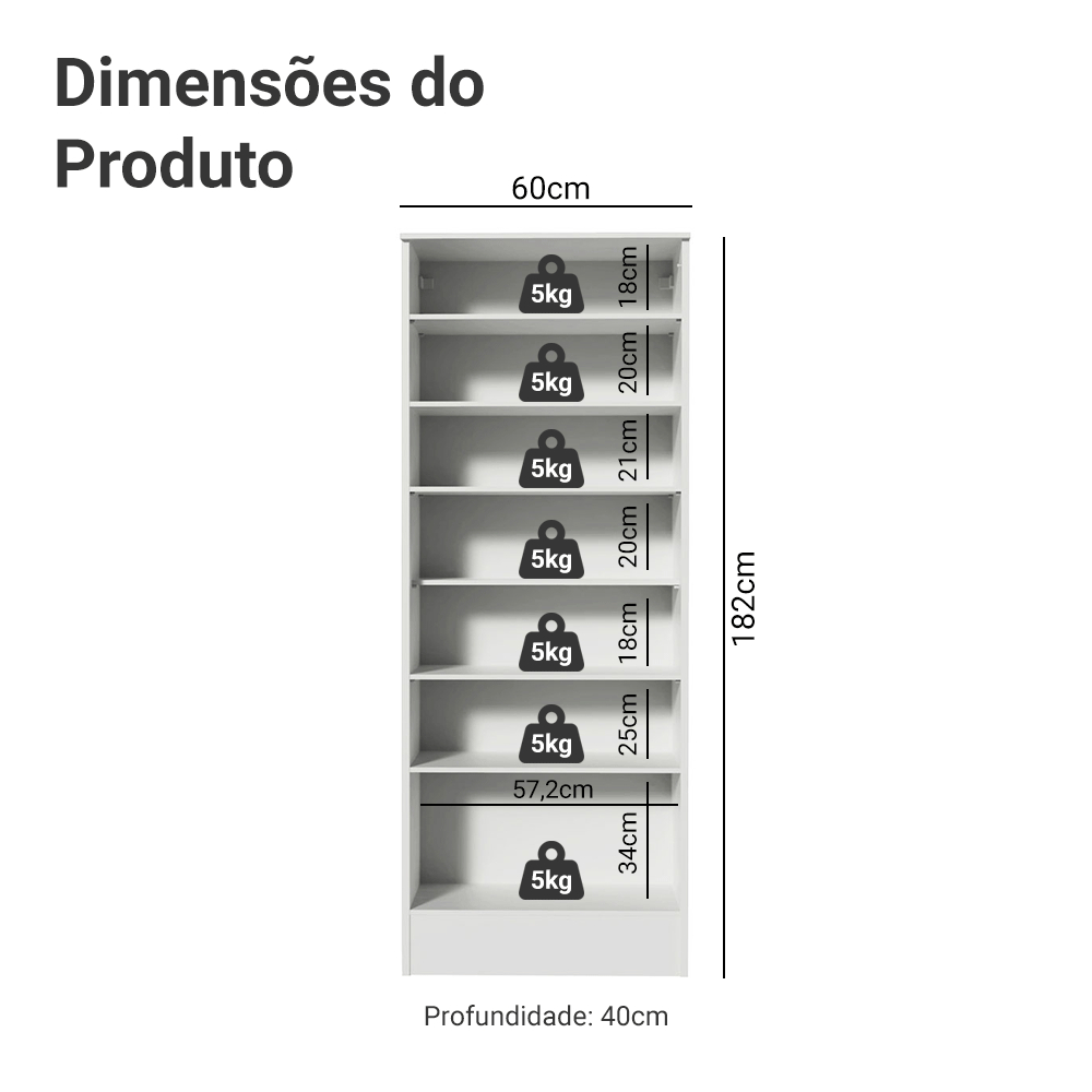 Conheça a Sapateira Isis da Madesa, uma grande opção para auxiliar na organização da sua casa. O móvel é fabricado com materiais de muita qualidade, com uma porta batente, dobradiças metálicas e puxador em alumínio, mais resistente ao uso diário. Na parte interna são diversas prateleiras e nichos, com ótima capacidade para armazenar todos os seus calçados. Outra possibilidade uso deste móvel é como um armário multiúso, para armazenar utensílios na sua lavanderia, garagem ou área de serviço. Medidas totais: -Altura: 182 cm -Largura: 60 cm -Profundidade: 40 cm Informações técnicas: - Material: MDP - Peso suportado: 35 kg Itens inclusos: - Uma (1) Sapateira com uma (1) porta e puxador em alumínio Código do produto: XA1104092E Obs.: - Para melhor utilização, é obrigatória a fixação da sapateira na parede - Imagens meramente ilustrativas, a decoração não acompanha o produto - A Madesa não disponibiliza serviço de montagem - O produto segue com manual e todas as ferragens necessárias para a instalação A Madesa possui compromisso com a sustentabilidade. Geramos energia limpa em nossa própria usina, priorizamos fornecedores responsáveis e utilizamos plástico reciclado em nossa produção. Além disso, reinserimos sobras no ciclo de reciclagem e investimos no desenvolvimento de nossos colaboradores e da comunidade. Garantia: Este produto conta com 1 ano de garantia total, sendo 3 meses de garantia legal e 9 meses de garantia contratual. A garantia cobre exclusivamente defeitos de fabricação e vícios ocultos. Não estão cobertos: problemas decorrentes de montagem incorreta, uso inadequado, exposição à umidade, calor ou luz solar direta, modificações no produto ou desgaste natural.