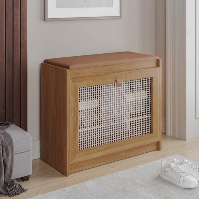 Sapateira Banco Com Assento Em Corino Preto ou Marrom Porta Basculante Madeira moderno oferta