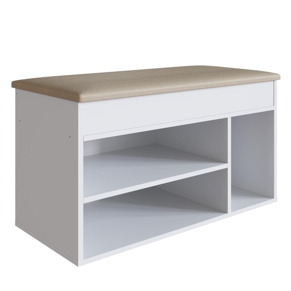 Sapateira Baú Puff Estofado Baixo Com Tampa 3 Nichos Prateleira Organizador Multiuso Branca