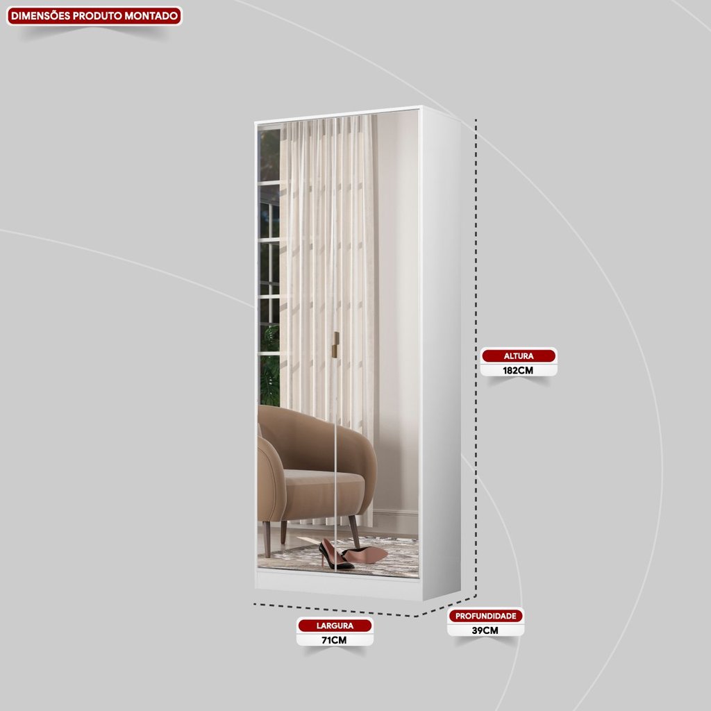 A Sapateira com Espelho 2 Portas 01 Gaveta Grife Demóbile é um móvel elegante e funcional que irá transformar o seu espaço. Com suas duas portas amplas revestidas por espelhos, este móvel não só embeleza o ambiente, mas também cria a ilusão de um espaço maior. As prateleiras internas são perfeitas para a organização de vários pares de sapatos, enquanto a gaveta desliza suavemente em corrediças telescópicas, proporcionando um espaço adicional para guardar pequenos pertences. Os puxadores discretos em alumínio adicionam um toque de sofisticação ao design, complementando a estética moderna da sapateira. Para garantir a integridade do produto durante o transporte, cada peça é cuidadosamente embalada em plástico termoencolhível e separada por isomanta, evitando danos e arranhões. Além disso, o produto é acompanhado por um manual detalhado de montagem, que torna o processo simples e descomplicado. Com a Sapateira com Espelho 2 Portas 01 Gaveta Grife Demóbile, você terá não apenas um móvel prático e bonito, mas também uma peça durável e de alta qualidade que irá atender às suas necessidades de organização e estilo. Adquira já e transforme o seu espaço com este móvel versátil e elegante. Estilo: Moderno Peso (kg): 53.8 Garantia: 03 Meses Altura (cm): 182 Acabamento: Impressão Largura (cm): 71 Possui Pés: Não Possui Portas: Sim Tipo de Porta: Bater Fita Integrada: Sim Possui Gavetas: Sim Suporta Até (kg): 20 Possui Espelhos: Sim Profundidade (cm): 39 Escala de Brilho: Fosco Gaveta com Chave: Não Altura do Espelho: 176 Material da Porta: MDP Origem do Produto: Nacional Ambiente Principal: Quarto Formato do Espelho: Retangular Largura do Espelho: 34 Material da Gaveta: MDP Material Principal: MDP Possui Prateleiras: Sim Acabamento da Porta: Impressão Sapatas Niveladoras: Não Acabamento da Gaveta: Impressão Espessura do Espelho: 3 Material da Prateleira: MDP Peso Máximo por Gaveta: 3 Quantidade de Espelhos: 02 Espelhos com Tamanhos Iguais Acabamento da Prateleira: Impressão Tipo de Puxador da Porta: Externo Escala de Brilho da Porta: Fosco Tipo de Puxador da Gaveta: Não Possui Peso Máximo por Prateleira: 3 Tipo de Corrediça da Gaveta: Metálica Telescópica Material do Puxador da Porta: Plástico Material do Puxador da Gaveta: Plástico Escala de Brilho da Prateleira: Fosco Tipo de Dobradiça/Corrediça da Porta: Metálica Marca: Demóbile Tonalidade: Branco Cor: Branca Cor do Produto: Branca Itens Inclusos: Sapateira e Manual Cor Predominante: Branco