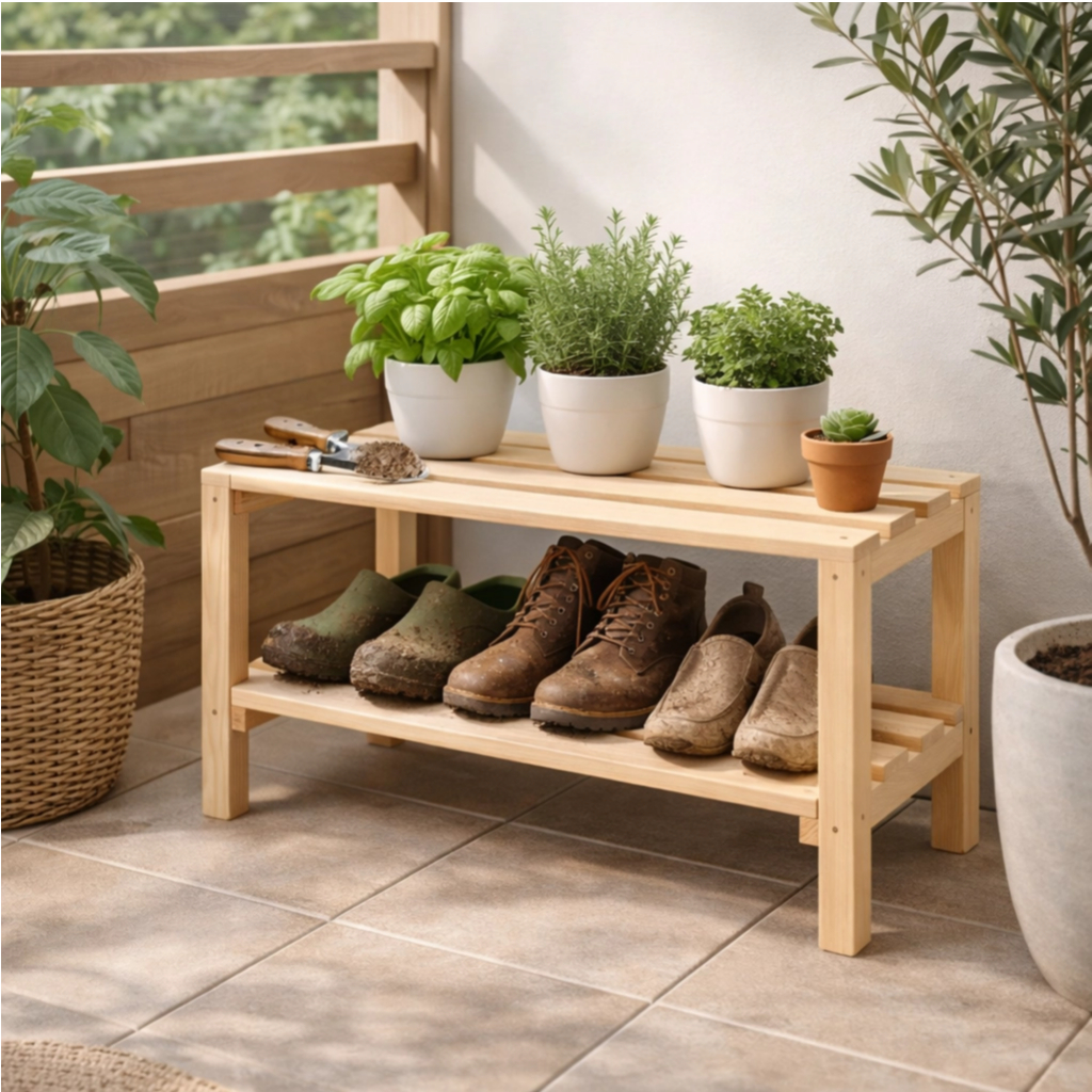 Sapateira de Madeira - Banco de Hall de entrada - Com 2 prateleiras Reforçadas