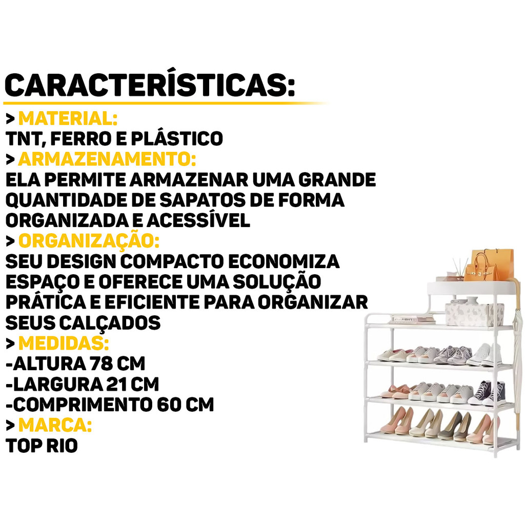 Sapateira Estante Organizadora Metal Porta Calçados Multiuso Capacidade Para 12 Pares Top Rio