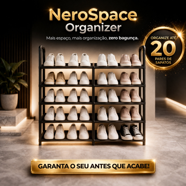 NeroSpace Organizer — a solução inteligente que transforma bagunça em organização instantânea. Chegar em casa e ver sapatos espalhados, caixas empilhadas e objetos sem lugar pode ser extremamente frustrante. A sensação de desorganização cansa, gera estresse e até vergonha quando chega uma visita. O NeroSpace Organizer foi criado exatamente para resolver esse problema de forma simples, elegante e extremamente funcional. Com um design moderno e estrutura resistente, ele transforma qualquer ambiente em minutos. Imagine abrir seu quarto, closet ou lavanderia e ver tudo organizado, visível e fácil de acessar. Mais espaço, mais praticidade e aquela sensação incrível de casa limpa, bonita e bem cuidada. Por que comprar o NeroSpace Organizer - Porque ele entrega organização imediata, transforma ambientes pequenos em espaços funcionais, valoriza sua casa com um visual moderno, facilita sua rotina diária, evita bagunça acumulada, cria sensação de controle sobre o ambiente e ainda faz sua casa parecer muito mais elegante e organizada. Medidas do item: Estrutura com 5 prateleiras amplas ideal para organizar diversos itens da casa. Materiais do item: Estrutura resistente com acabamento moderno e durável. 🚨 ATENÇÃO: Restam poucas unidades do NeroSpace Organizer disponíveis neste lote promocional. Quando o estoque acabar, o preço sobe imediatamente. Garanta o seu agora antes que as últimas unidades sejam vendidas.