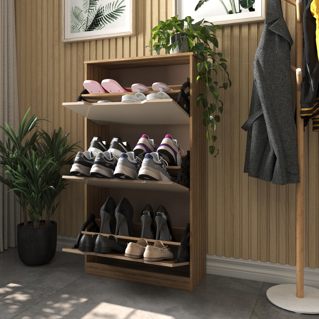 Sapateira Freijó 3 Portas Basculantes Retrátil Inclinável Design Moderno Organizador Para Calçados Hall Entrada Quarto