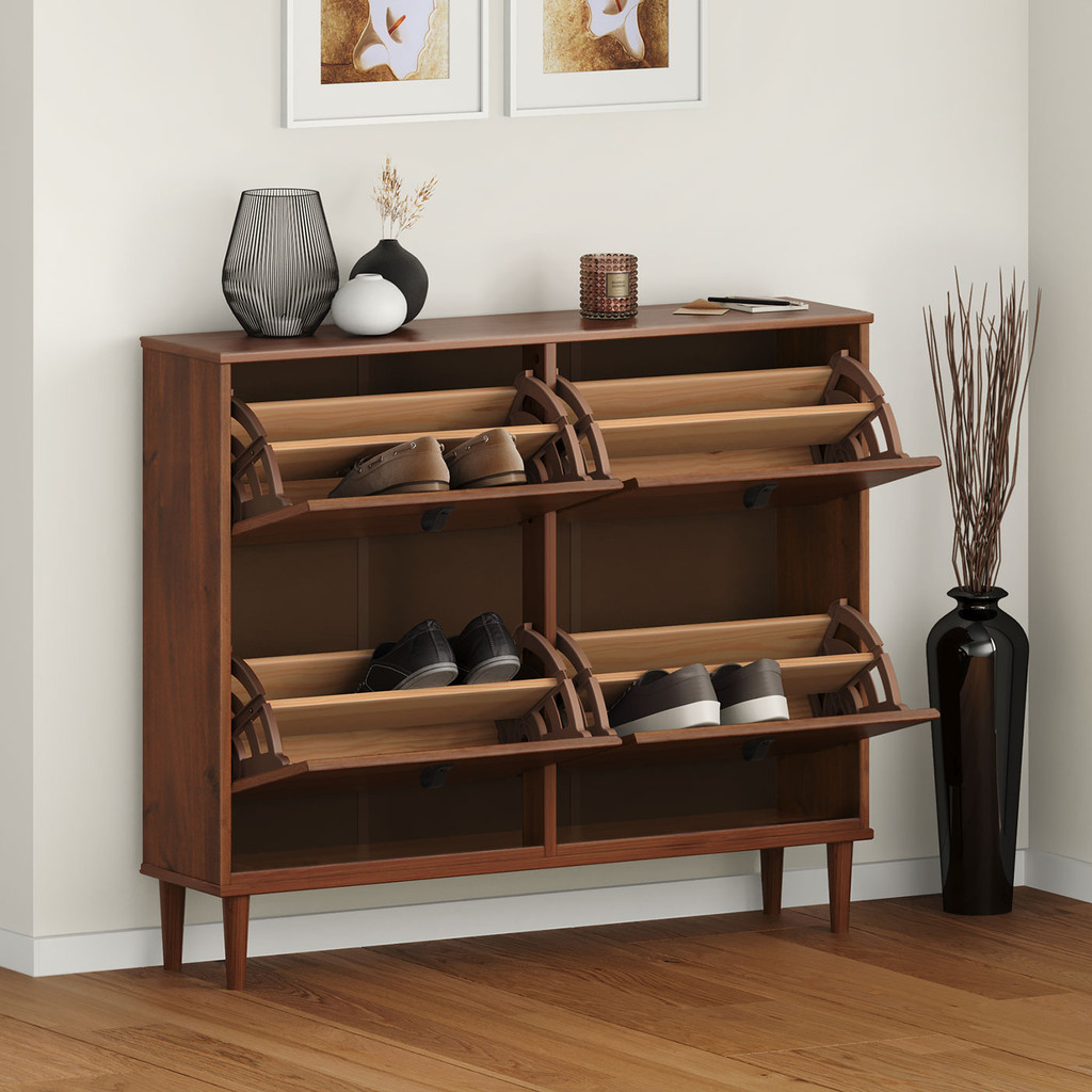 Sapateira Madeira Horizontal Organizadora 4 Portas Mikka Castanho