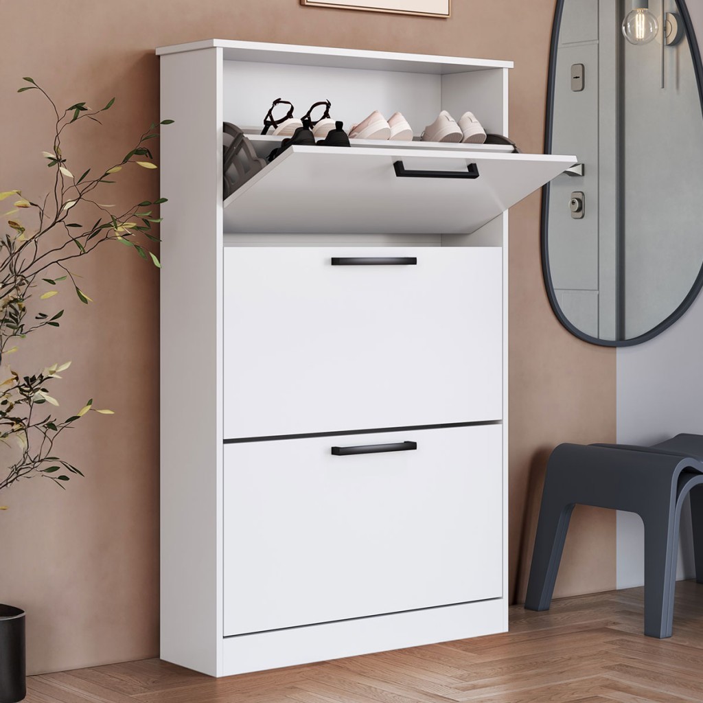 Dimensões: - Altura: 127,50 cm - Largura: 78,20 cm - Profundidade: 22,50 cm - Peso: 27,650 kg Descrição: O(a) Sapateira Melissa 3 Portas Branco - Irm Móveis é produzido em MDP na escala de brilho Brilhante, e possui um grau de dificuldade de montagem: Médio.Seu revestimento/acabamento é: Pintura UV. Infelizmente a Loja não oferece serviço de montagem, deixamos essa informação bem clara em todas as nossas páginas de produto. Onde especificamos que os móveis chegarão desmontados, e que a montagem fica por conta do cliente. Como não oferecemos esse serviço não embutimos o mesmo no preço dos produtos, ou seja, maior economia para você! Todos os nossos móveis também acompanham o manual de montagem, e caso você queira, pode realizar a montagem você mesmo, sempre especificamos os graus de montagem dos produtos. Nos casos de grau baixo e médio, com pouco ou nenhum conhecimento, você mesmo pode efetuar a montagem, e fazer essa economia. Apenas nos graus de montagem alto, recomendamos a contratação de um montador com experiência, visto que são montagens mais complicadas. A montagem é feita com Parafusos, cavilhas e Minifix.. Este móvel é indicado para que seja utilizado no(a) Quarto, dando um toque especial no cômodo de sua casa. Para que você mantenha seu produto sempre em ótimo estado, recomendamos que use apenas um pano seco ou levemente umedecido, sem o uso de quaisquer produtos abrasivos. A Loja garante aos clientes, 90 dias de garantia nos produtos, porém, recomendamos que entre em contato com o fornecedor/marca do produto, pois o mesmo(a), pode garantir um prazo maior de garantia. Lembrando ainda que: quaisquer objetos decorativos que aparecem nas imagens, não acompanham o produto. Características: - Espessura da Estrutura: 15mm - Possui Gavetas?: Não - Possui Portas?: Sim - Quantidade de Portas: 3 - Material da Porta: MDP - Espessura da Porta: 15 mm - Tipo de Porta: Portas Basculantes - Material das Dobradiças: Articulador - Possui Vidro?: Não - Possui Espelho?: Não - Possui Prateleiras?: Não - Possui Puxadores?: Sim - Material do Puxador: Plástico - Possui Ripamento?: Não - Linha ou Coleção: Melissa - Montagem Invertida?: Não Pode ser Montado Invertido - É frágil?: Não - Possui Nicho?: Não - Pares de Sapato Suportado: 18 - Material da Estrutura: MDP - Escala de Brilho: Brilhante - Possui Rodízios?: Não - Possui Pés?: Não - Possui Vidro: Não - Tamanho Unico Grande Pequeno: Único - Acompanha: Sapateira, Kit de Ferragem e Manual de Montagem - Acompanha Manual de Montagem: Sim - Como os Móveis Chegarão na Minha Casa: Desmontado em caixas, acompanhado de todas as peças, ferragens e manuais para montagem. - Grau de Dificuldade da Montagem: Médio - Necessita de Montagem: Sim - Sistema de Montagem: Parafusos, cavilhas e Minifix. - Garantia (dias): 90 - Indicação de Uso: Quarto - Observação: Objetos decorativos que aparecem nas imagens, não acompanham o produto. - Recomendação de Manutenção: Utilizar pano levemente umedecido, seguido de pano seco. Não utilizar quaisquer produtos abrasivos. - Revestimento /Acabamento: Pintura UV
