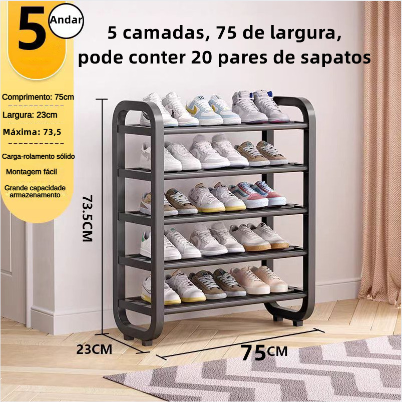 Sapateira Multiuso com 5 Andares - 75 cm de Largura Prateleira de armazenamento de sapateira