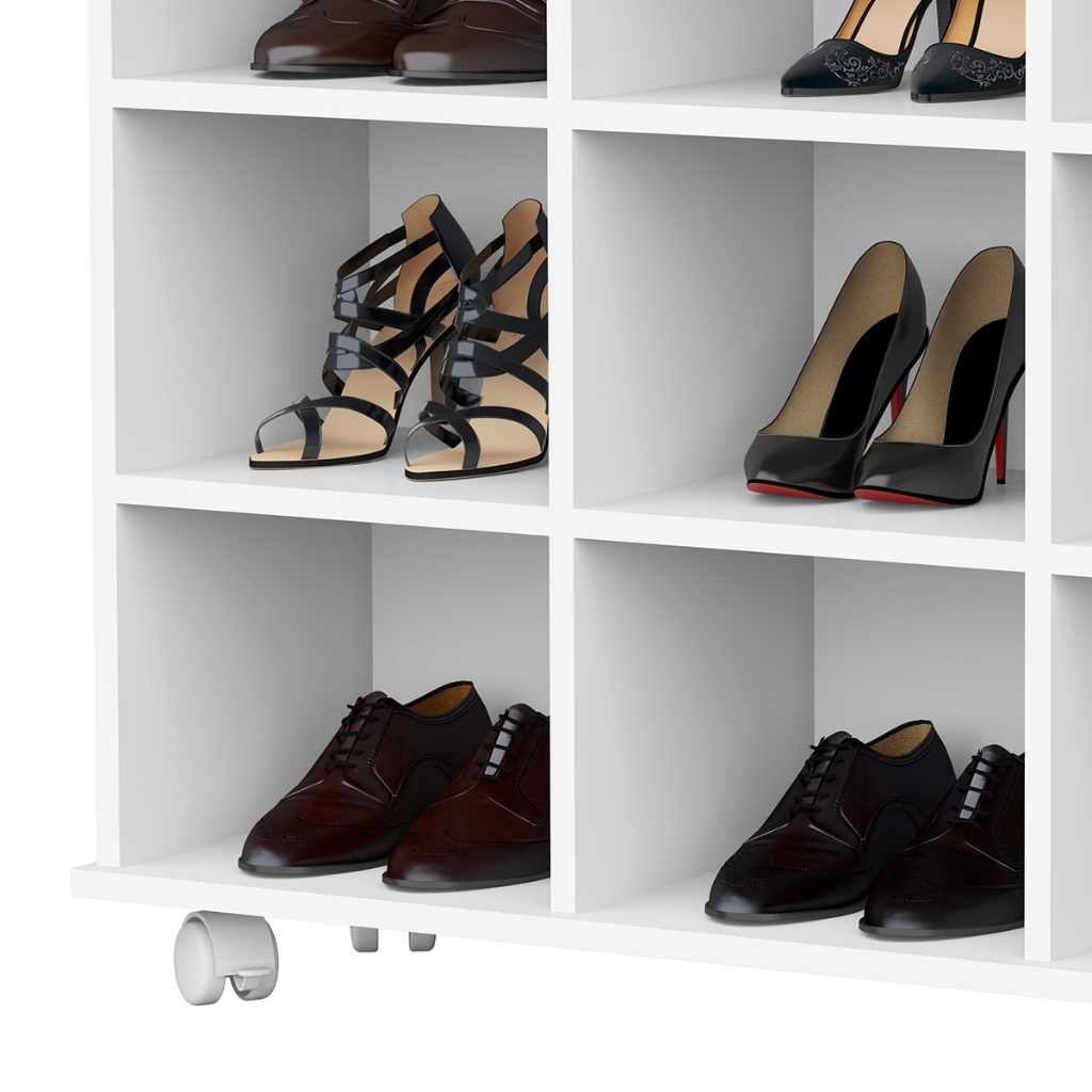 Sapateira Organizador com Rodinhas 9 Nichos Branco para Closet Quarto Feminino Masculino Calçados
