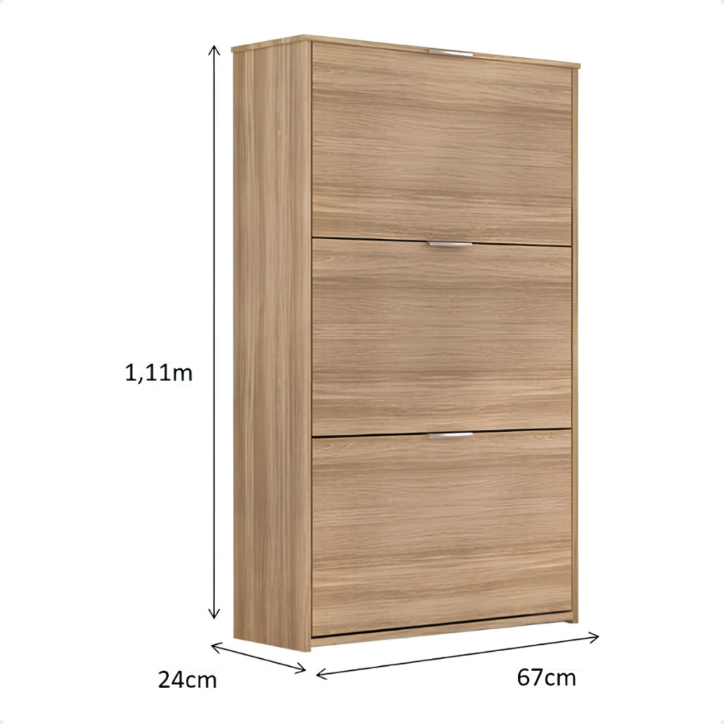 Sapateira 3 Portas Basculantes para 18 Pares | Altomani Móveis ATENÇÃO: Para que o envio seja realizado corretamente, é necessário comprar apenas 1 unidade por pedido. Pedidos com mais de 1 unidade devem ser feitos separadamente. Mantenha seus calçados organizados e seu ambiente sempre em ordem com a Sapateira da Altomani Móveis. Com design contemporâneo e estrutura resistente, ela acomoda até 18 pares de sapatos, sendo perfeita para espaços compactos como quartos, corredores e closets. Diferenciais do Produto - Design Moderno: Estilo atual que combina facilmente com diversos ambientes. - Estrutura Resistente: Produzida em MDP de alta durabilidade, garantindo estabilidade e uso prolongado. - 3 Portas Basculantes: Fácil abertura e ótimo espaço interno para organizar seus calçados. - Acabamento UV Premium: Cor uniforme, proteção extra e maior durabilidade. - Montagem Prática: Acompanha manual detalhado e kit de ferragens. Itens Inclusos - 1 Sapateira desmontada - 1 Manual de instruções - 1 Kit de ferragens Medidas do Produto Montado - Altura: 111 cm - Largura: 67 cm - Profundidade: 24 cm Dica Importante - Para evitar danos durante a montagem, leia o manual com atenção ou contrate um profissional. Por que escolher esta Sapateira da Altomani Móveis? - Capacidade para até 18 pares de calçados - Estrutura resistente e acabamento de qualidade - Compacta, prática e fácil de montar - Ideal para otimizar espaços pequenos com organização e estilo Adicione mais organização, praticidade e elegância ao seu ambiente com a funcionalidade e qualidade da Altomani Móveis.