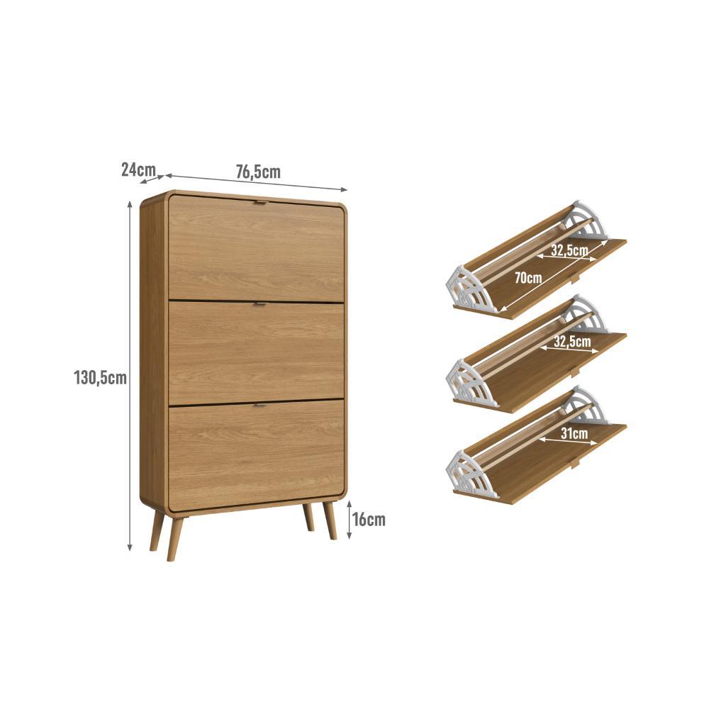 Sapateira Organizadora 3 Portas Linha Curve CV007CXCX 76cm Carvalho Xingu - Completa Móveis